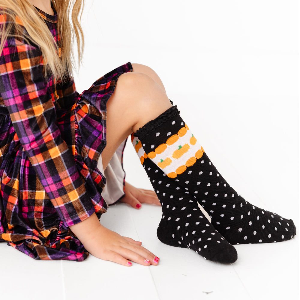 My daughter loves these, wears them all the time. Unfortunately very tight, especially the lace at the top. I have a 99% child and she loves all things girly and adores high socks. Coincidentally she has a very hard time getting thes on and makes her leg sore where the lace cuts in to the top. Not larger child friendly but very well made.