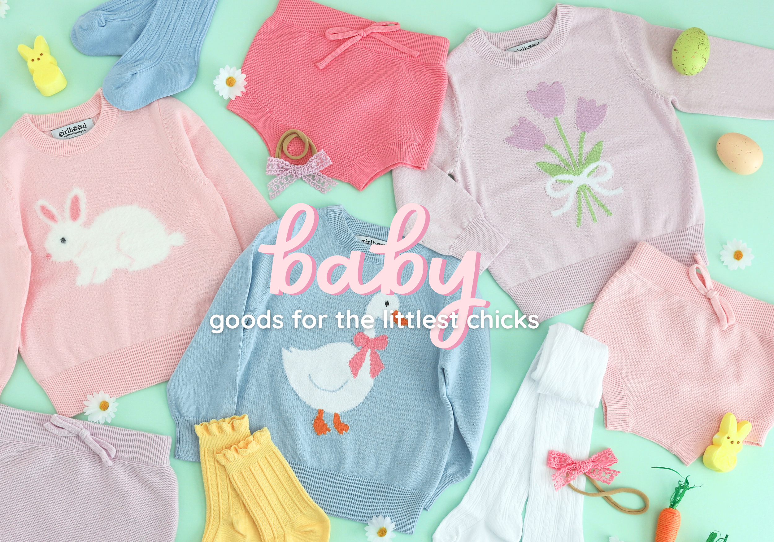 Find baby girl sweaters, bloomers, tights, socks, bows and more that are as soft as they are sweet. Styling is easy with made-to-match coordinating colors and perfectly adorable accessories for every outfit.