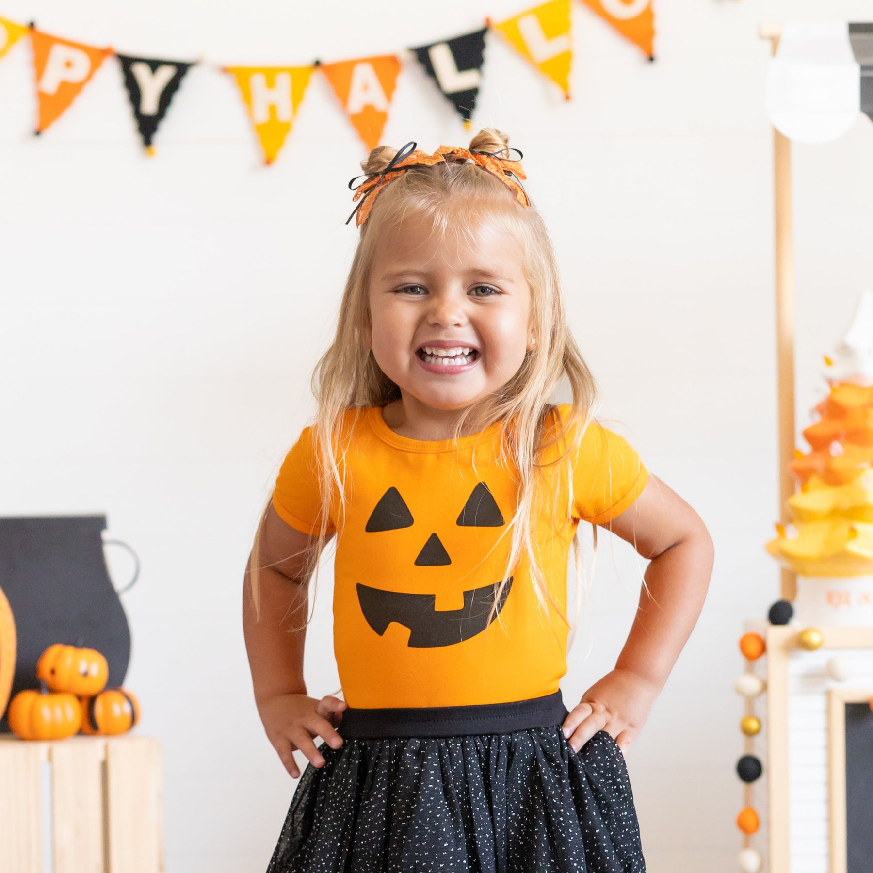 Orange Pumpkin Top is Orange with Black jack-o-lantern sublimated design