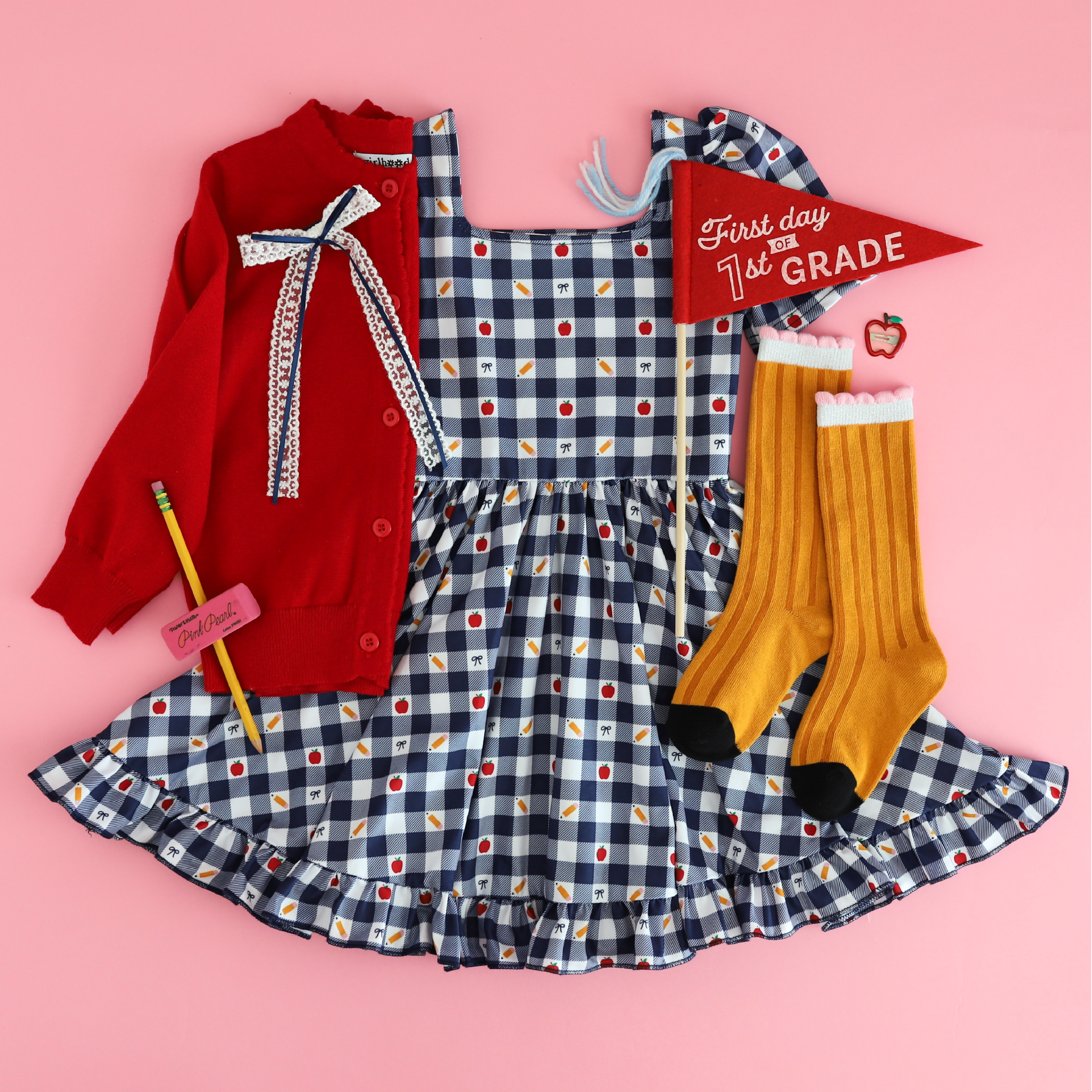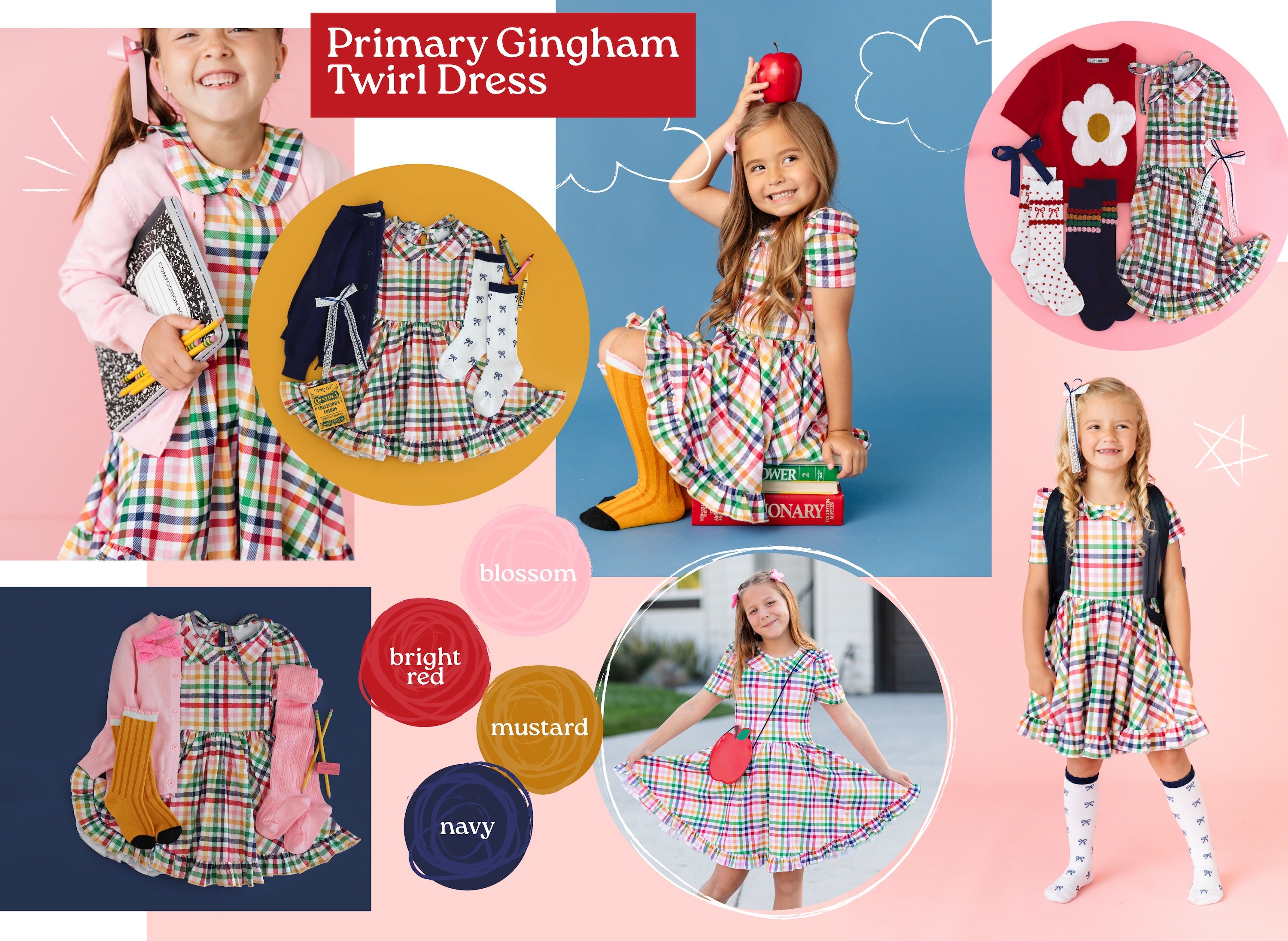 Back to School Outfit Inspo - Primary Gingham Twirl Dress