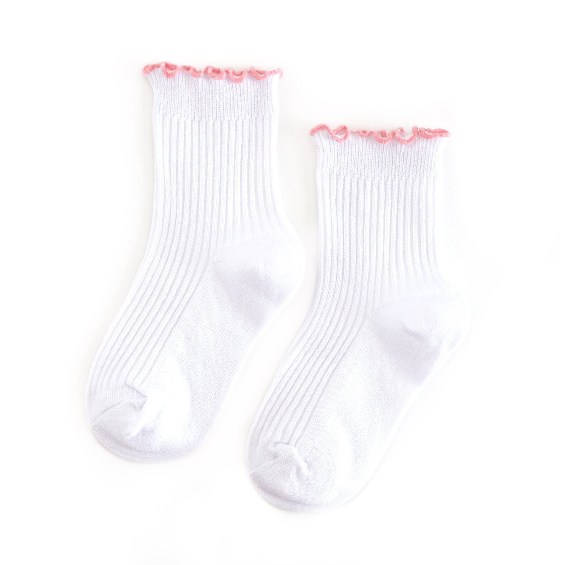 girls white ribbed ankle socks with pastel pink lettuce trim